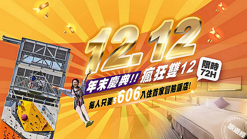 網路購物節除了雙11外,雙12也是一個重要的促銷日期,其中凱撒飯店連鎖旗下的「趣淘漫旅台南」在雙12檔期,將推出年度重磅優惠──「年末慶典瘋狂雙12」,只要西元、民國生日、身份證字號內有2個1或2個2,即可享指定日專案優惠價入住,活動於12月9日中午12點起,限時72小時開放搶訂,至12月12日中午12點止。活動期間祭出雙人入住豪華景觀客房每晚1,212元、四人入住每房2,424元,而且還加贈六項冒險活動體驗,讓民眾可以為自己打造一場刺激,也是一場突破的年末度假之旅,而且還有機會到賞梅勝地去賞梅!