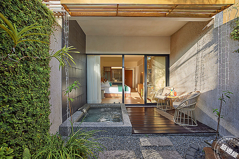 深受家庭客喜愛的池畔花園客房,客房專屬花園搭配Jacuzzi按摩浴池,盡享從早玩到晚的戲水樂趣,花園更配有專屬後門可直達椰林泳池。圖/墾丁凱撒提供