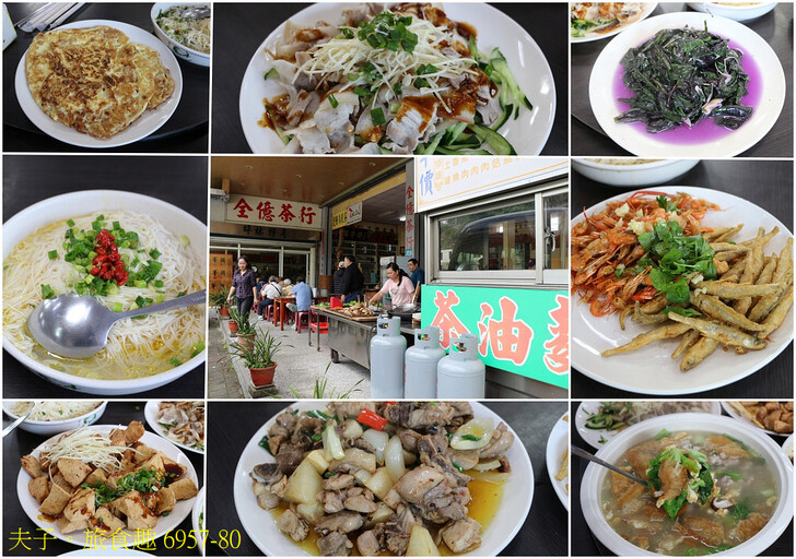 坪林全億茶行茶鄉風味午餐,炸溪魚、溪蝦與使用包種茶樹籽製作的茶油拌麵線是餐飲推薦項目。