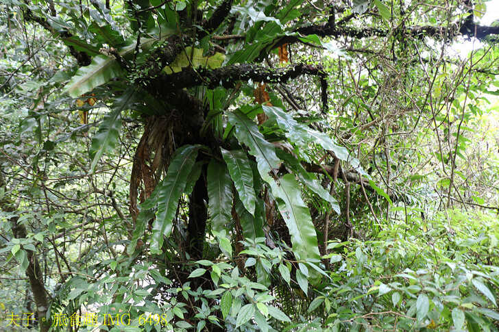 鳥巢蕨又稱為山蘇,生於樹幹上葉子向外簇擁生長,中間形成一個空漏斗,利用中空的漏斗來收集雨水、落葉和鳥糞等轉化成肥料。