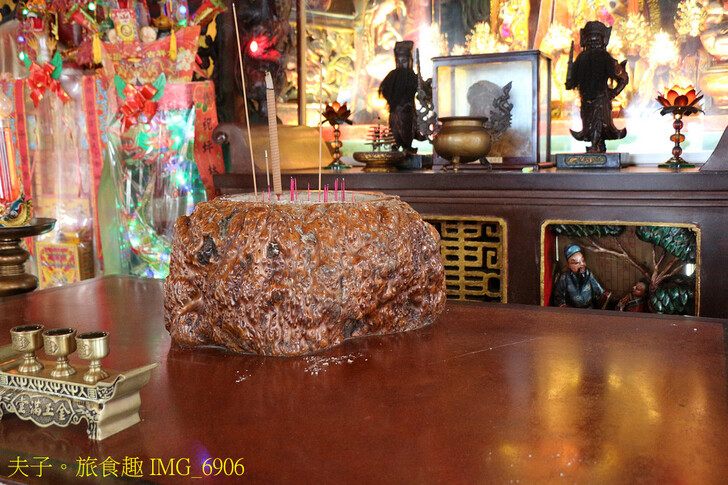 神桌前的奇木香爐,以天然樟樹的樹瘤部位製作,是因為以前山區物資缺乏就地取材製作。