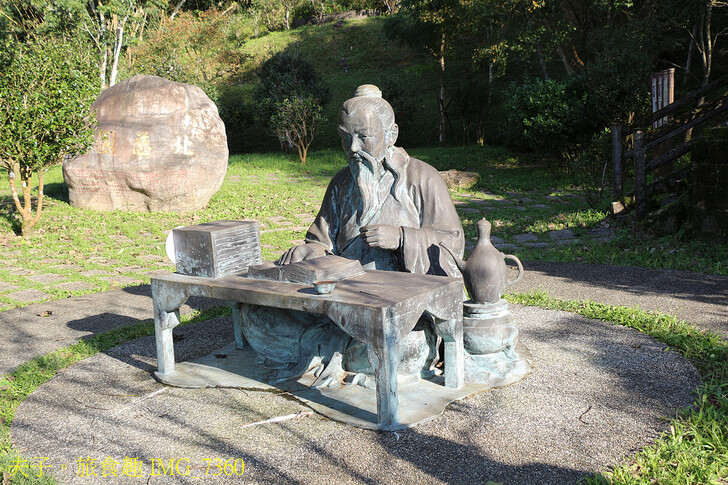 坪林石雕公園,緊鄰坪林茶業博物館,以茶文化為主題,唐代茶聖陸羽的雕塑遍布園區,紀念其撰寫「茶經」、推廣茶文化的貢獻,入口處的「九龍球石雕」象徵「飲水思源」。