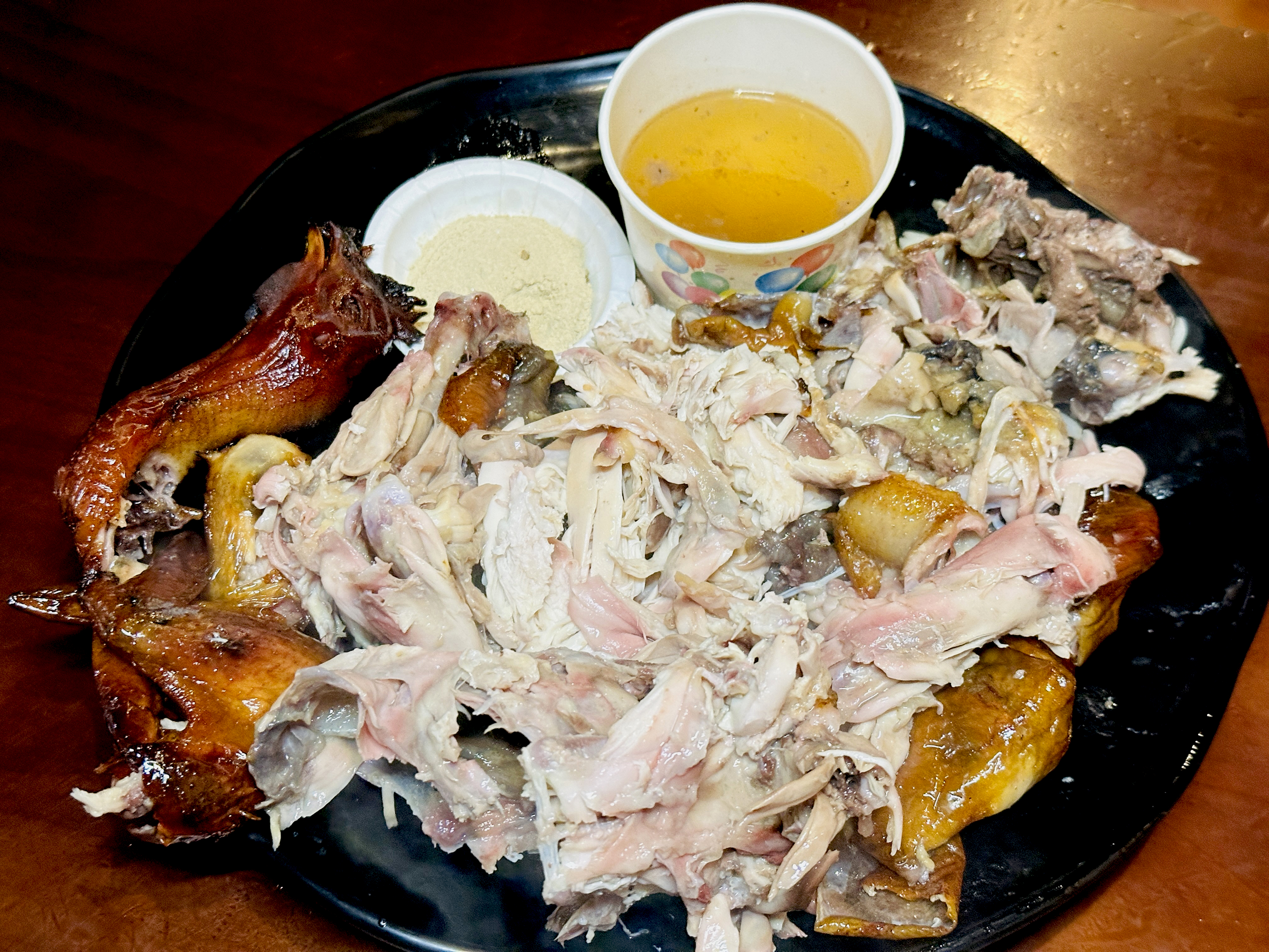 皮脆、肉嫩、肉汁豐富,單吃就很讚,搭配 椒鹽、雞油、生洋蔥 層次更豐富。現點現烤需等約 45 分鐘,但絕對值得!