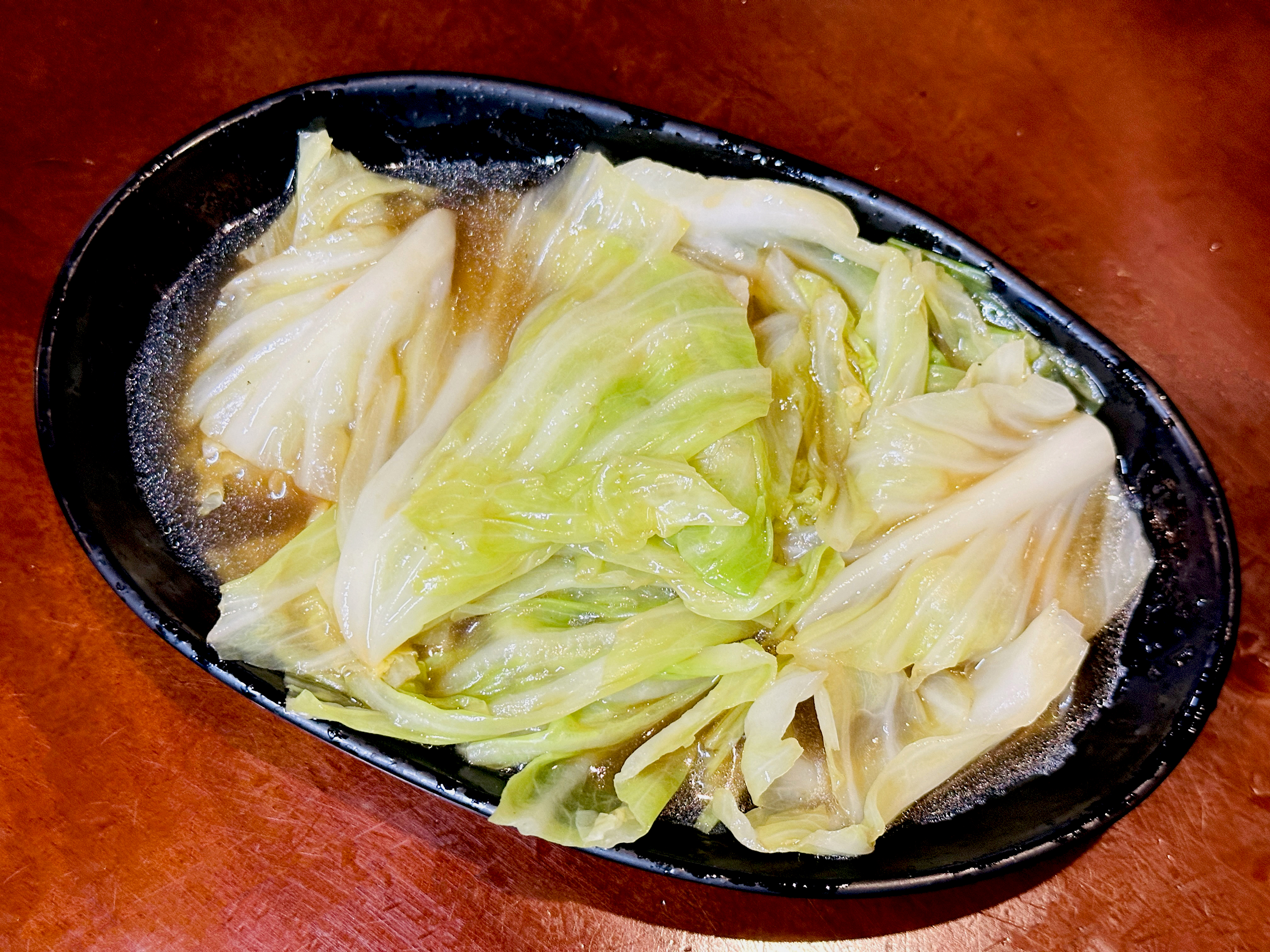 這個時節菜價不便宜,但這份 燙高麗菜 竟然不用破百!淋上簡單調味就非常清爽,吃串燒時來一盤蔬菜真的超解膩