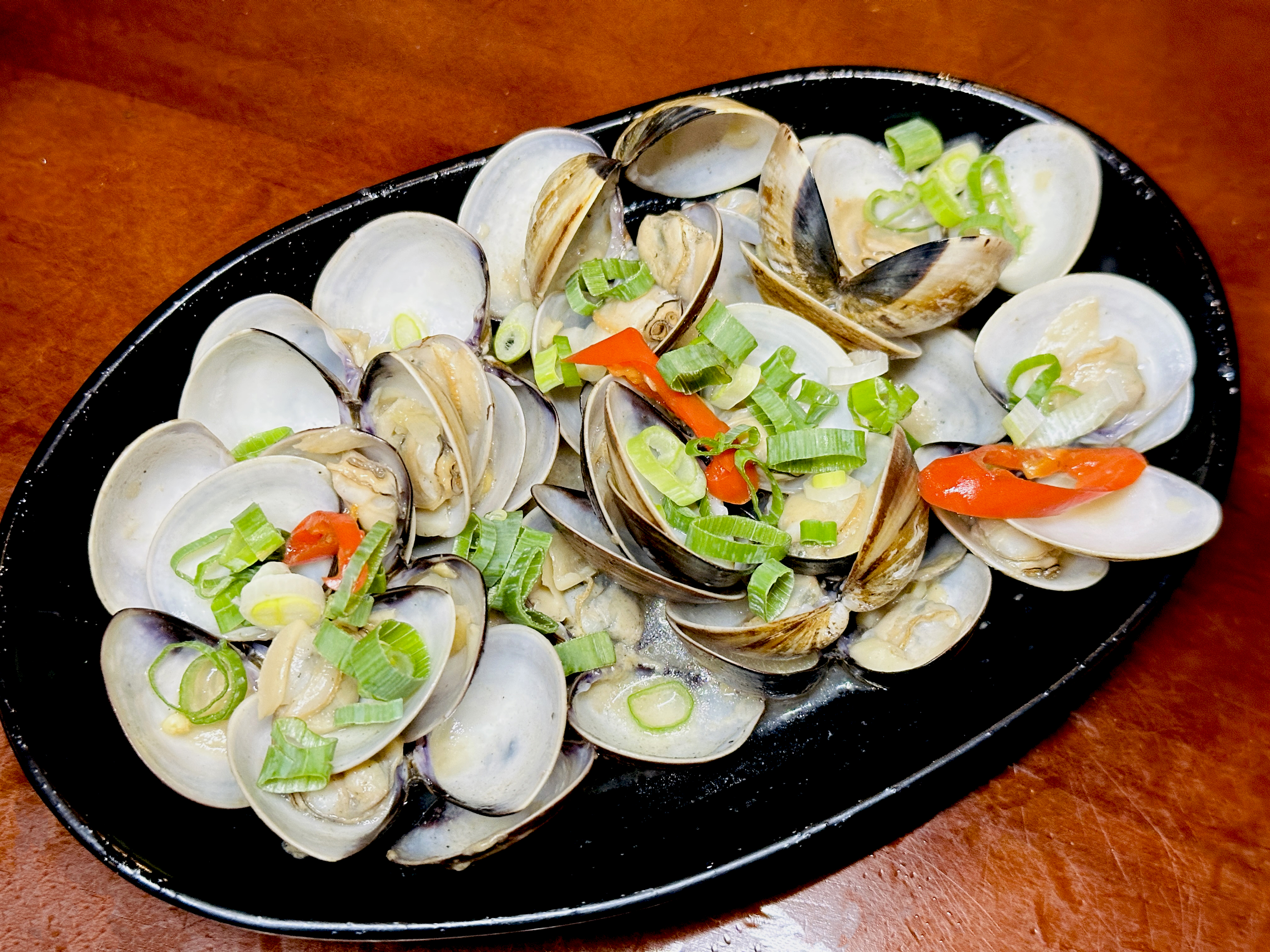 酒蒸蛤蜊 調味帶點微辣,蛤蜊沙吐得乾淨無腥味,是很稱職的下酒菜