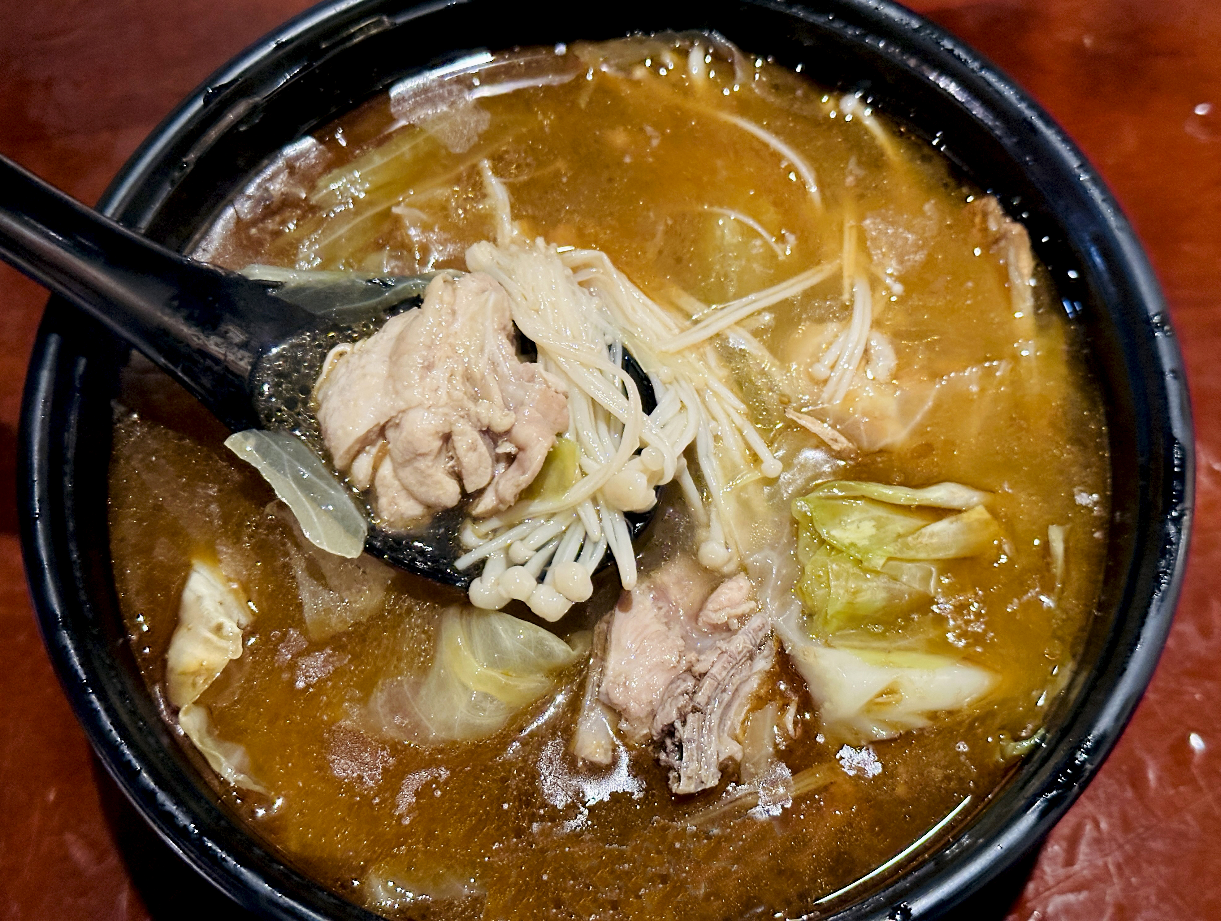 裡頭還有金針菇、高麗菜,份量扎實,天冷喝這碗實在太舒服了