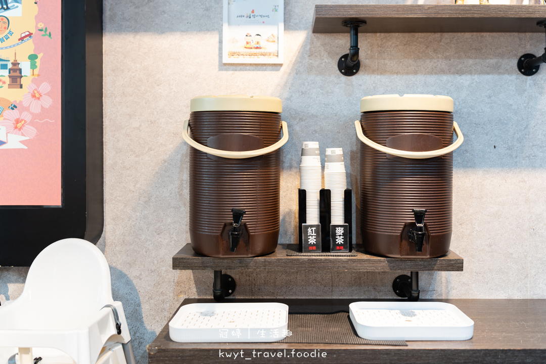 提供免費暢飲的熱紅茶、熱麥茶,特別是麥茶獨特的烘焙香氣,非常有韓國食堂的感覺。