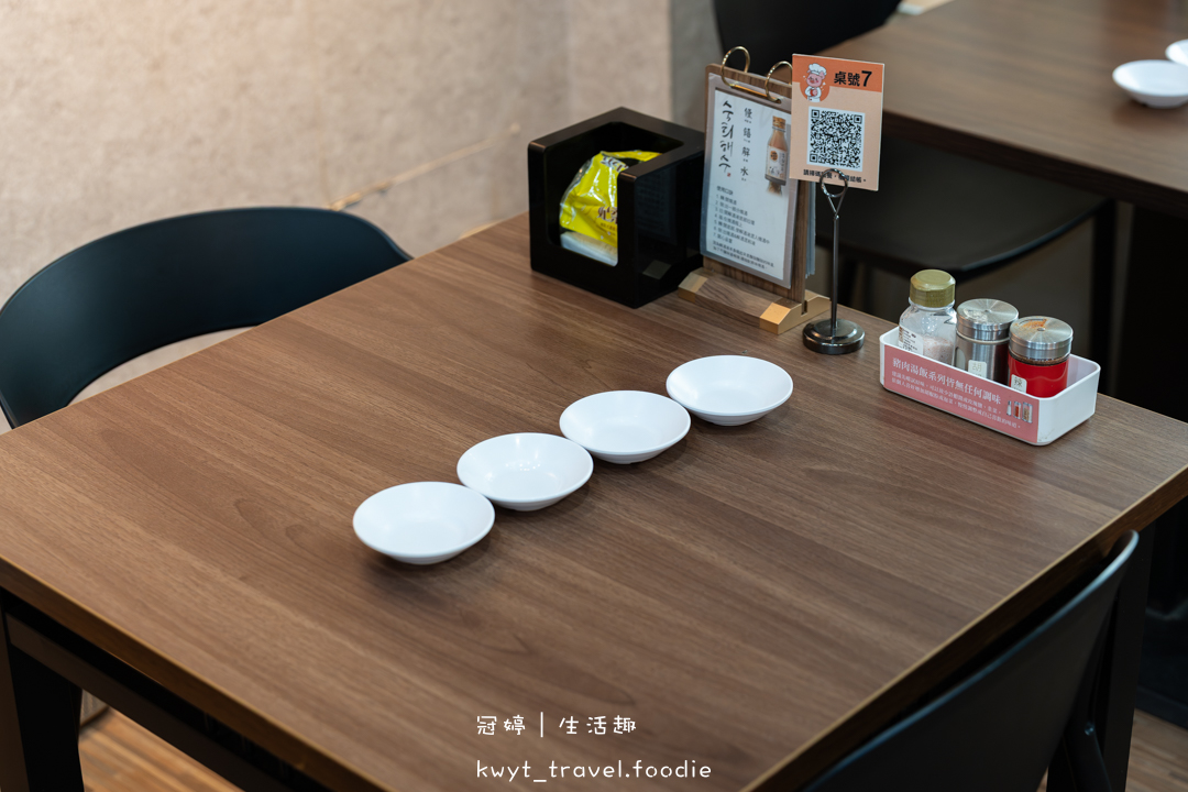 走進庫霸豬肉湯飯,映入眼簾的是簡約明亮的工業風設計,搭配溫暖的木質桌椅,營造出乾淨俐落的現代韓式食堂氛圍。