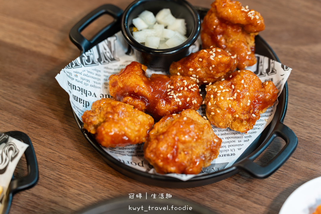 炸得金黃酥脆,裹上濃稠的韓式甜辣醬,依然保有脆度的辣味韓式炸雞。