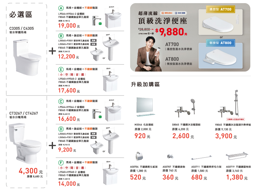 馬桶、臉盆、龍頭一次配齊 特惠組合暖心又省心