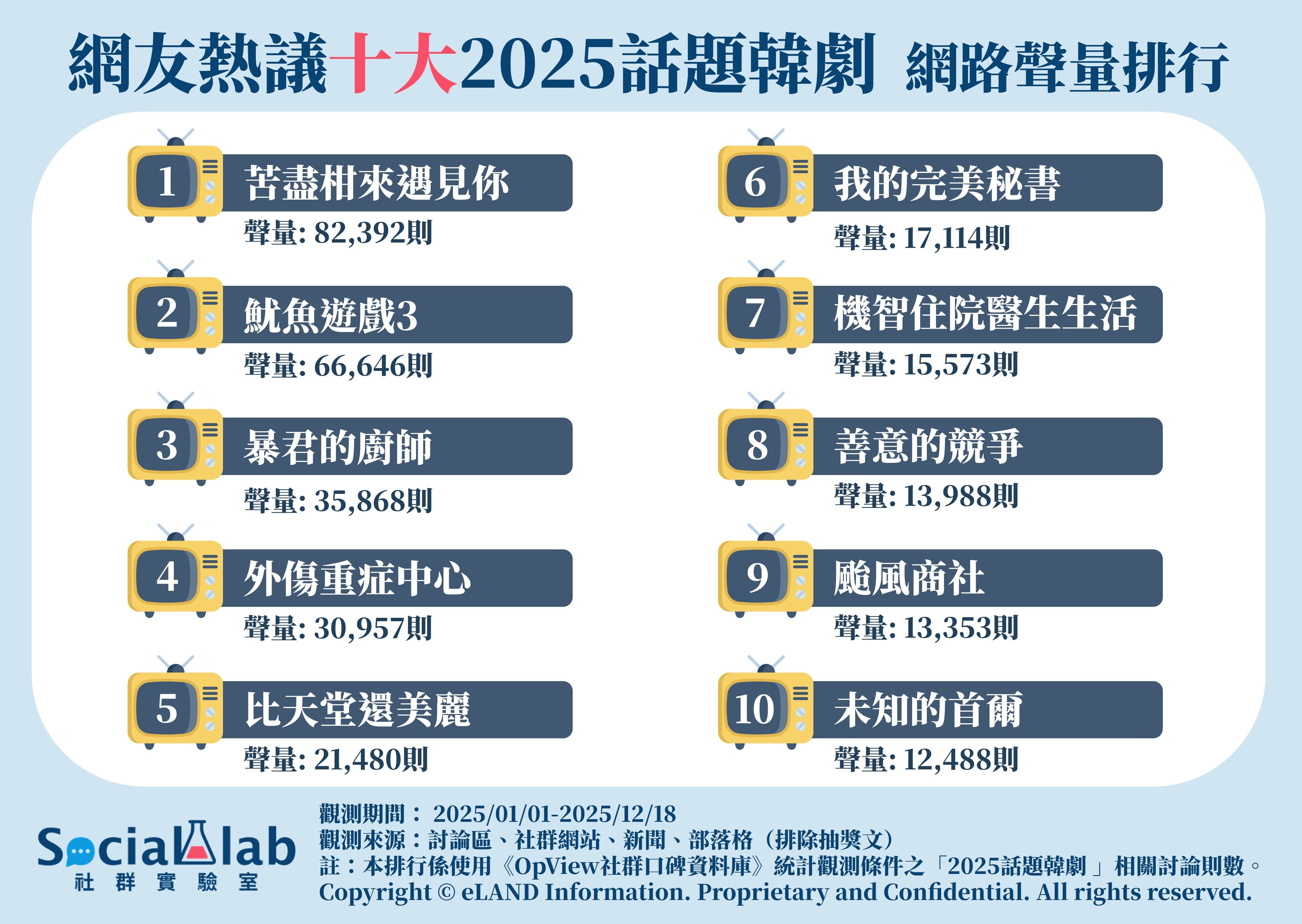 ▲ 網友熱議TOP10話題韓劇 網路聲量排行