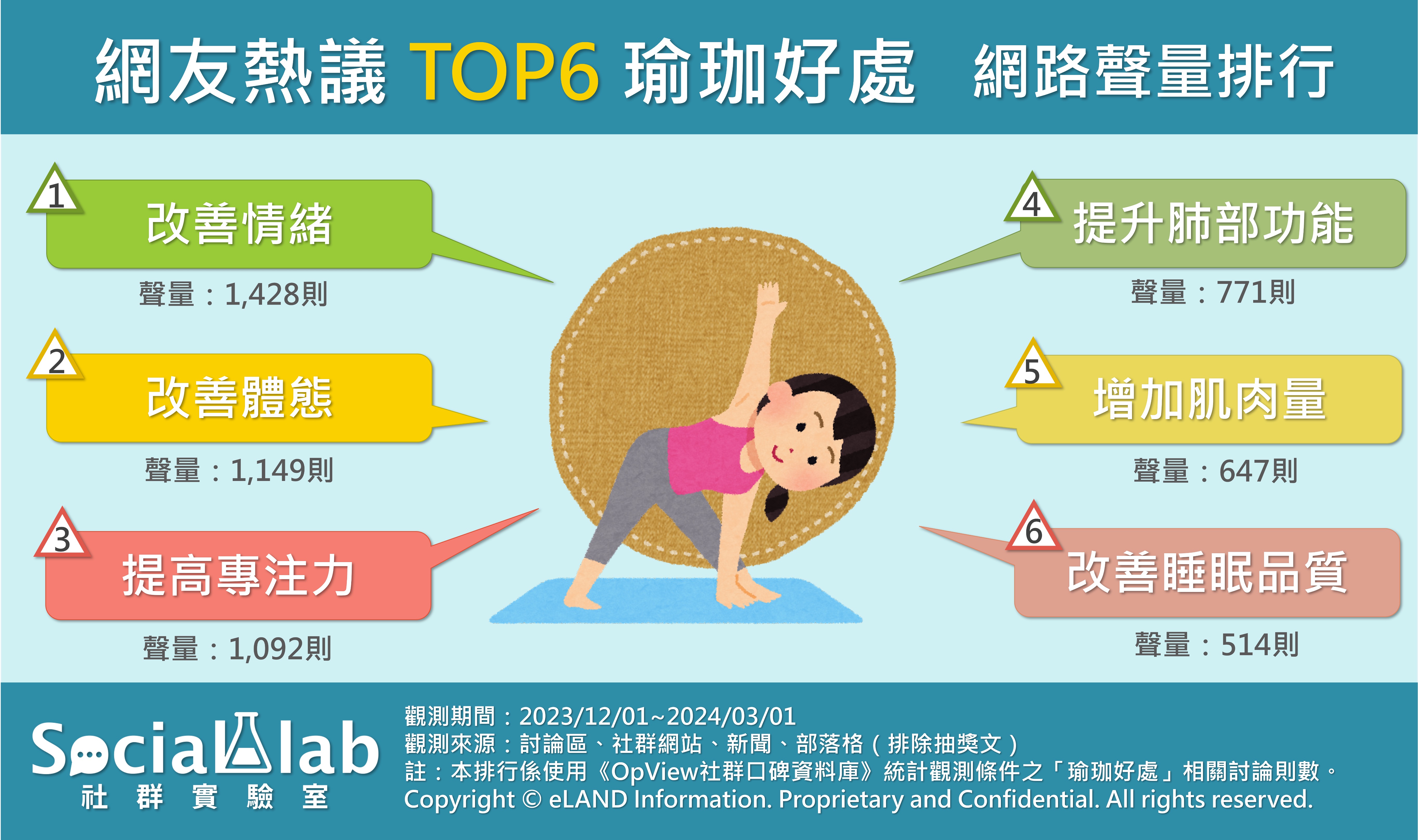 ▲ 網友熱議TOP6瑜珈好處 網路聲量排行